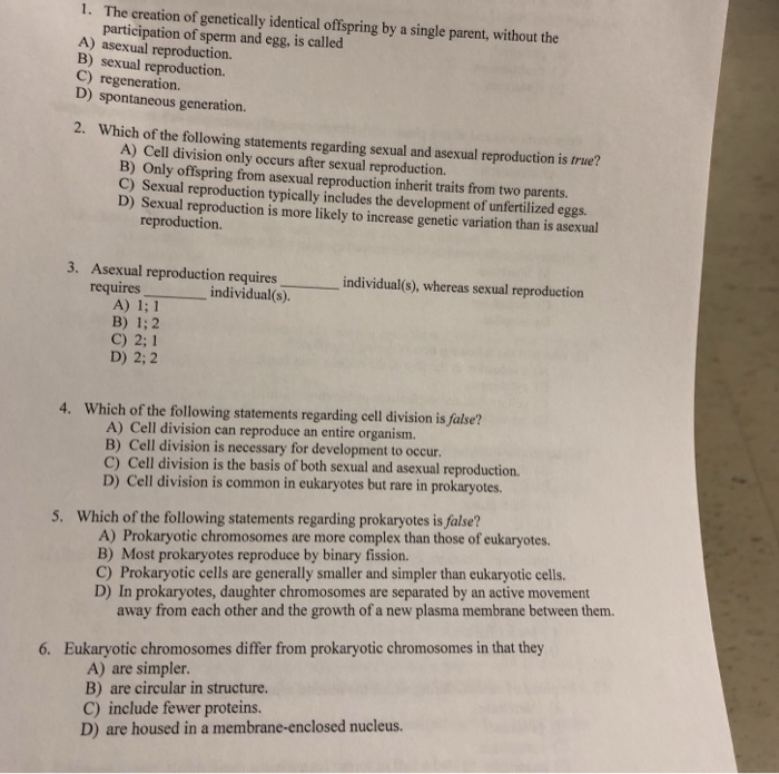 Which of the following is true about sexual reproduction. Which of the following statements regarding sexual and asexual reproduction is true. Offspring produced by sexual reproduction are genetically identical.