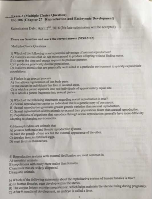 Solved Which Of The Following Statements About Sexual Chegg Com