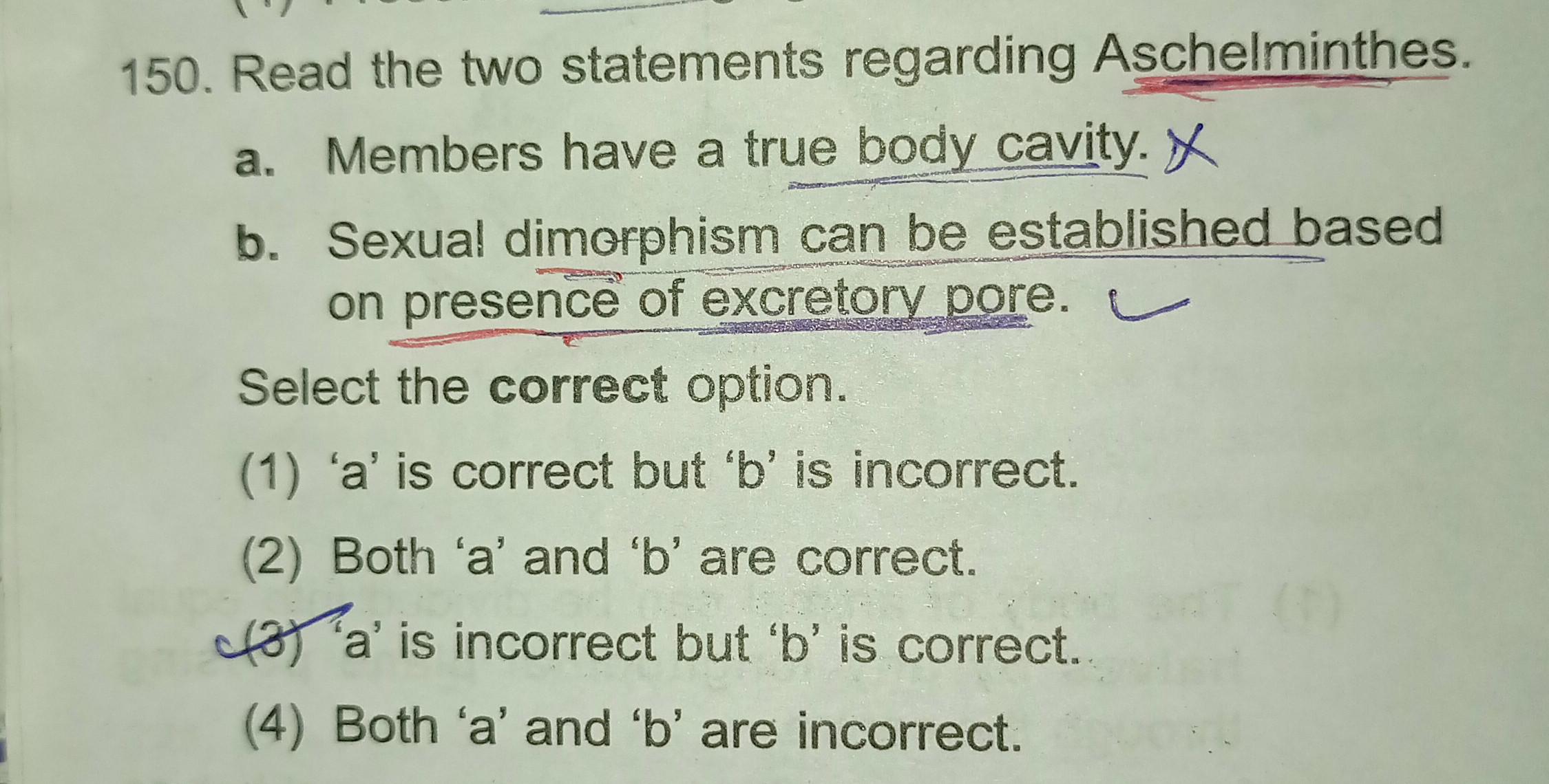 150 Read The Two Statements Regarding Aschelminthes Biology